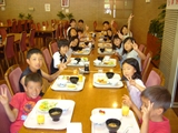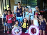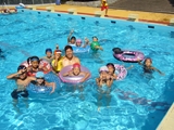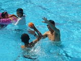 2日目、朝食後は念願のプールタイム!!水中バスケットボールゲームをする子、泳ぎの練習をする子、小さい子に泳ぎを教えてあげる子、めいめいが思う存分プールで遊び、帰りの電車では参加者全員が疲れ切っていましたが、みんな楽しい夏の思い出ができたようです(^^)