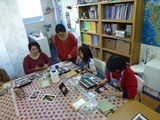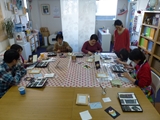 参加者全員が初めて手にする画材に最初は戸惑いながらも、友紀子さんのレクチャーを聞きながら、すこしづつコツをつかみつつ、集中した1時間となりました。